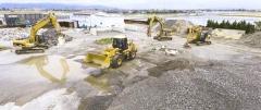 県内より大量に発生するコンクリート・アスファルト等の建設廃材及び墓石・雑石等を破砕し、再利用を行っております。